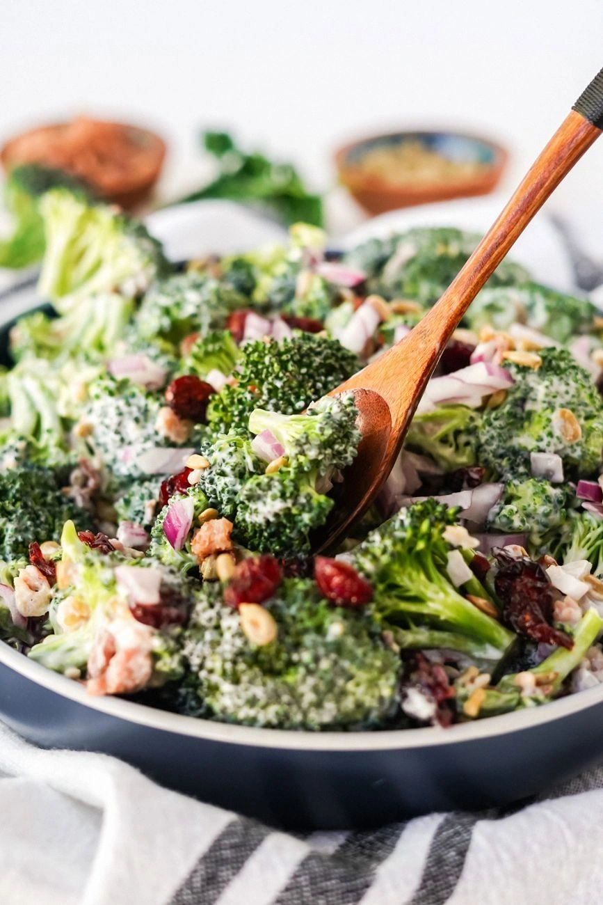 Add a cup of cooked quinoa or farro for extra protein and texture. Toss the grains into the bowl with the broccoli and cranberries before adding the dressing. This turns the dish into a satisfying main course.