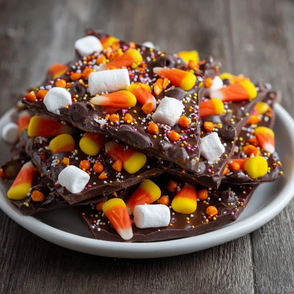 The moment the dark chocolate chips hit the heat, the air filled with a rich, buttery aroma that made my eyes water in anticipation. I could already hear the faint crackle of the melting chocolate, a sound that promised a silky, glossy finish. When I lifted a spoonful of the molten mixture, the glossy sheen reflected the glow of the kitchen lights, turning the countertop into a miniature moonlit lake. The texture was silky, the flavor was deep, and the anticipation of the first bite was almost too good to be true. I could almost taste the sweet, slightly bitter chocolate mingling with the sugary crunch of candy corn, the fluffy surprise of marshmallows, and the whimsical pop of Halloween sprinkles.
