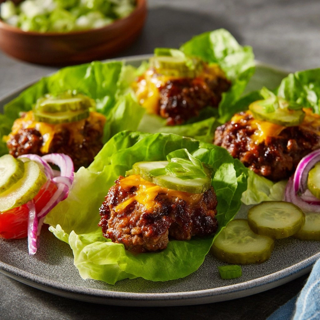 Lettuce leaves are the crunchy, hydrating layer that keeps the sliders fresh. Butter lettuce or romaine works best; they’re sturdy enough to hold the filling without wilting. Cheddar cheese slices melt beautifully, creating a creamy bridge between the meat and the pickles. Tomato slices add a juicy burst, while pickles provide a tangy bite that cuts through the richness. The combination of these textures turns each slider into a multi‑sensory experience.